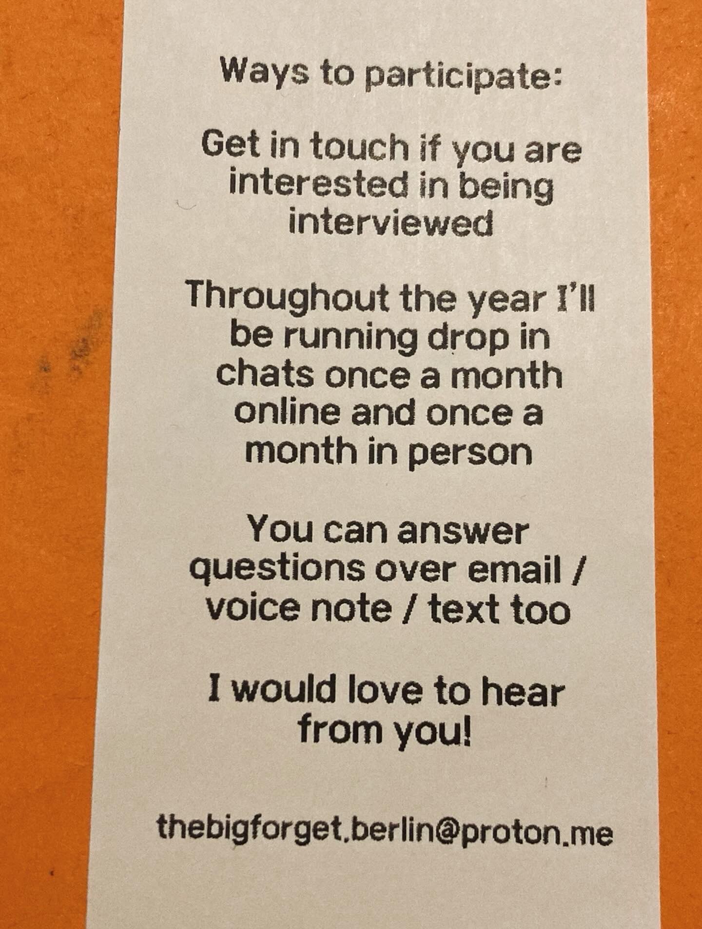 let’s talk about how we can make your participation accessible to you. you can answer questions over email / voice notes / text. we can meet masked and with rapid tests or plus life tests. we can meet outside. we can meet online. we can talk in English or German. you can invite me to your event or group and i’ll collect stories in the corner.